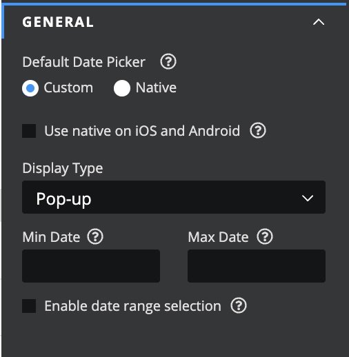We’ve rebuilt the date picker from the ground up to include date ranges and provide a native date selection experience on mobile devices. The new date picker gives you much more control over the look and feel of the component and allows for different experiences across mobile and desktop dvices. With the Pop-up display style selected you can choose whether to have the native experience on iOS and Android devices only or fall back on native for all device types.
