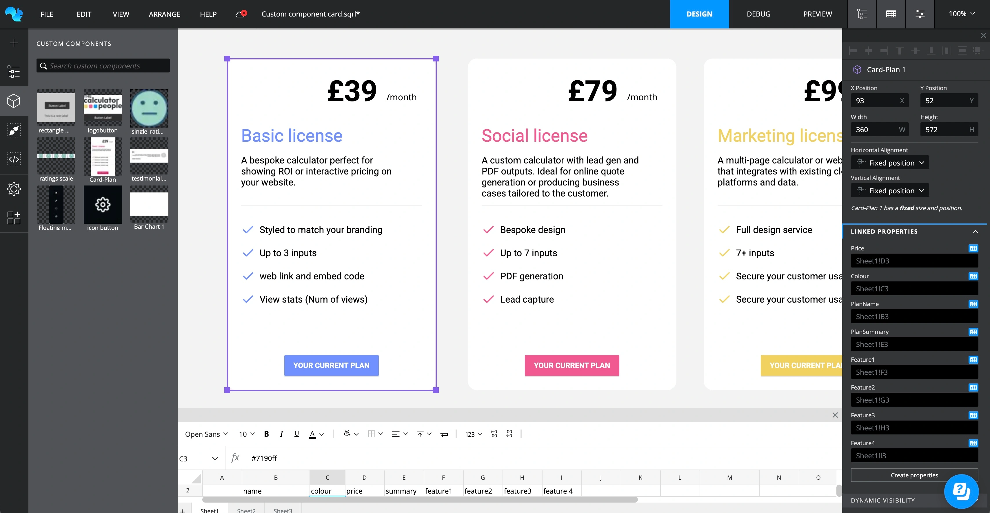 What makes Custom Components genuinely powerful is property linking. You can choose which internal widget properties are exposed as bindable properties on the component, so each instance can be configured independently whilst sharing the same underlying design and logic. Need 12 KPI cards that all look the same but each bind to a different data source? Build one, link the data binding properties, drop 12 instances, and configure each one in seconds.